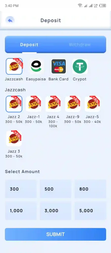 • Select the amount, how much you want to deposit in this game, above 300 you can deposit in this game.