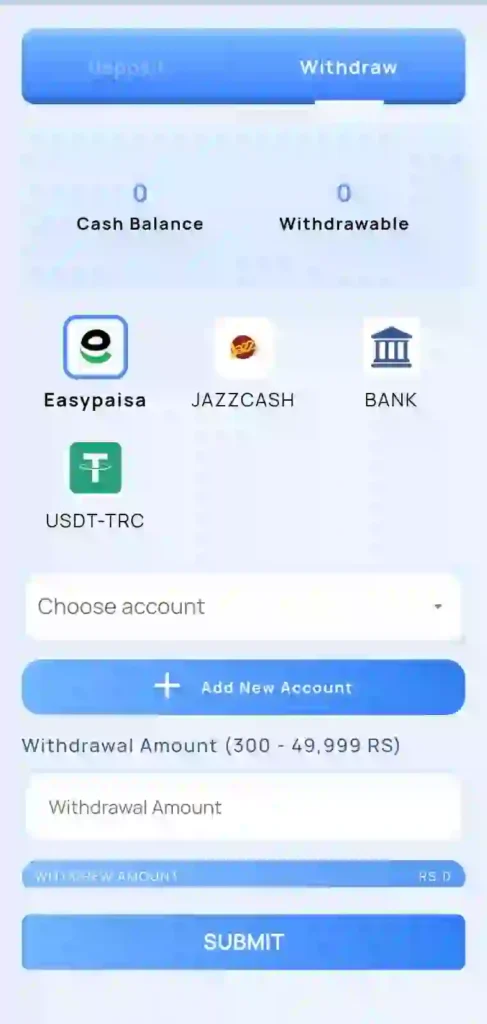 • After that select that account in which you want to withdraw whether it is Easy Paisa or Jazz Cash.